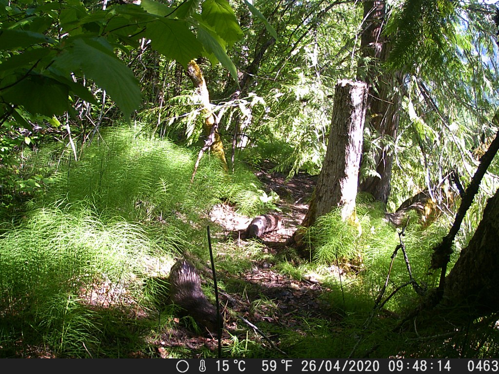 When I first set up my camera I thought the area I found with flattened horsetails and what I’d describe as dark gunk was from a nearby resident beaver. But no! Two slinky bodies showed up multiple times on the camera. Awesome! Now, I had to learn more.