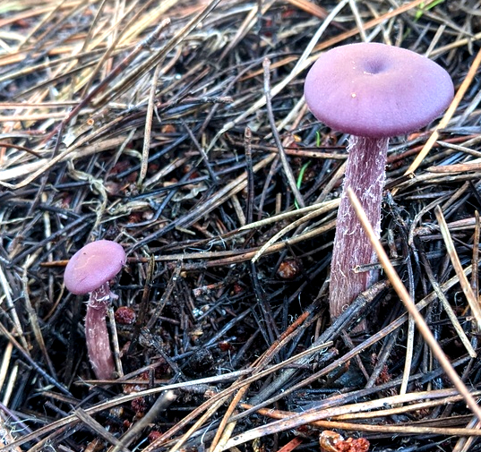 You can find this common laccaria poking through the duff of conifers and hardwoods. But the purpley-grey to purpley-brown is anything but common. While other mushrooms like Russulas have purple coloration I really like this one because both the cap and stipe are similar purple tones. Even the basal mycelium is purple-ish! But the true star features are the brighter purple gills which retain their color as the rest of the mushroom ages into greyer shades of purple.