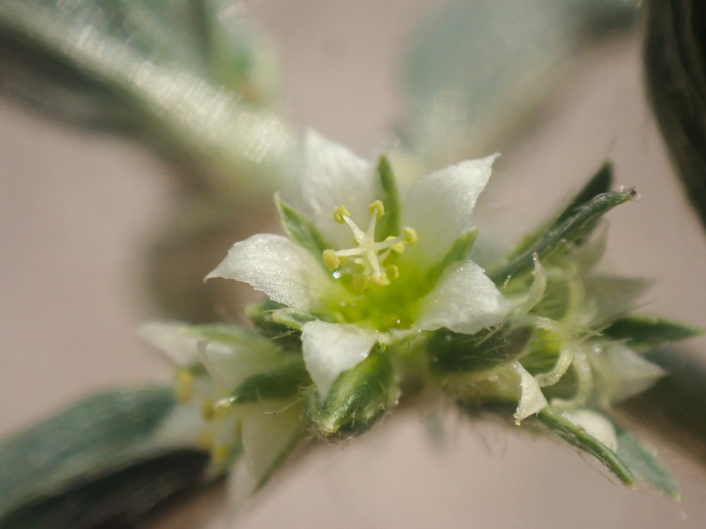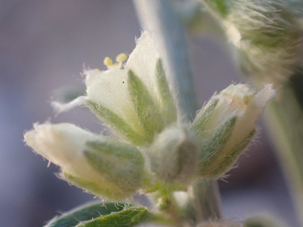 Quite similar to the last Ditaxis this New Mexico Ditaxis, Ditaxis neomexicana is quite nice but oh so hairy! This plant is annual or perennial with a densely appressed-hairy stem, as you can see above. The staminate flower is glabrous, and the pistillate flower has a hairy back with entire white petals. The leaves are lanceolate in shape, not densely hairy, and with entire or faintly toothed edges.