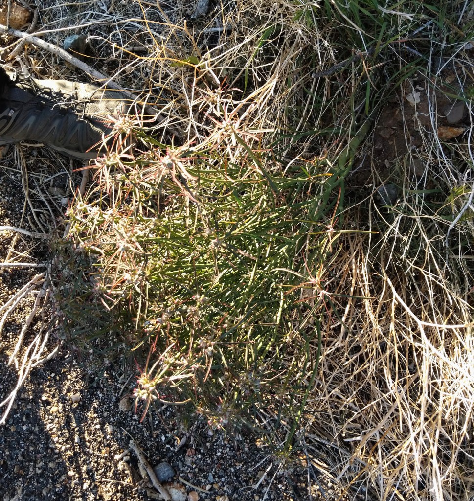 This little beauty is probably the most common sandmat we’ve found in the last month-ish, which goes by the Smallseed Sandmat, Euphorbia polycarpa. Most sandmats appear just like how is sounds a mat in the sand. It’s form is like a pile of spaghetti noodles plopped on a plate! While it’s hard to tell from my photos the stems actually form a zig-zag pattern! This plant might be the only one to memorize because traditionally it was formed into a poultice and applied to scorpion and snake bites. There’s a little ethnobotany for you. Fingers crossed no scorpion or snake bites this summer!