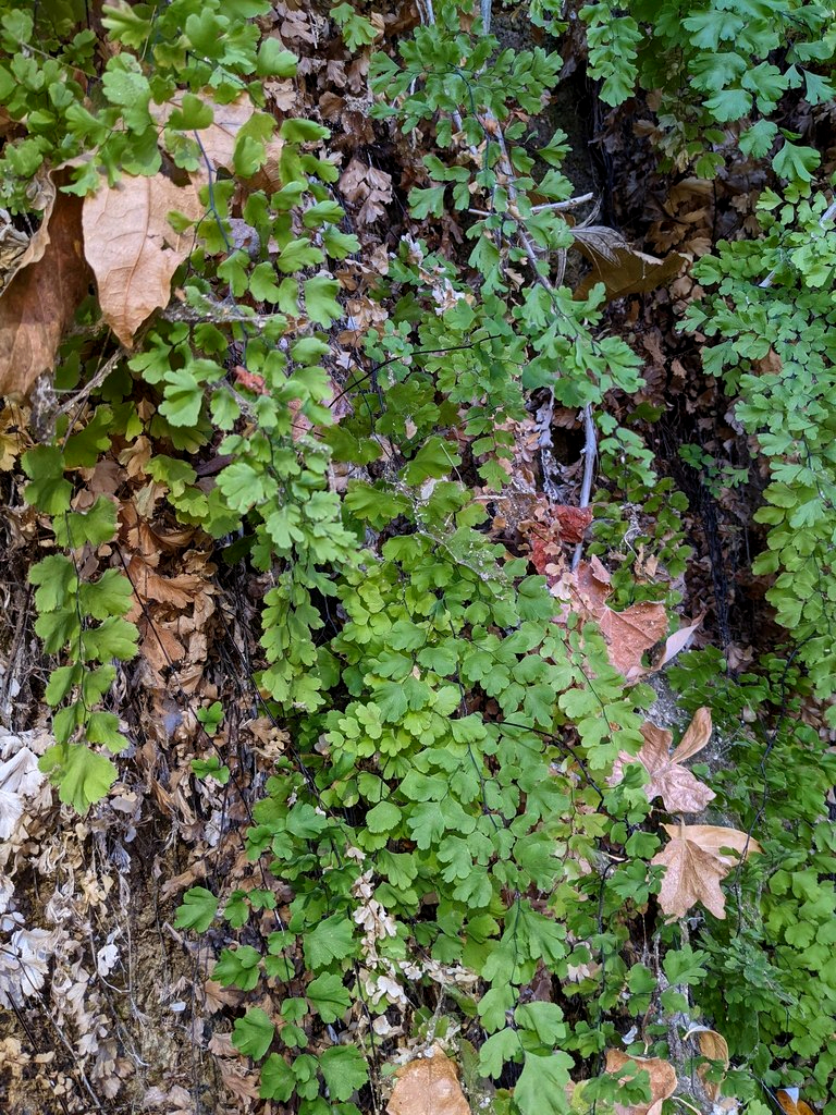 Ahhh another great plant, and while to most it may just look like another ol maidenhair fern this one took some effort to get to. It was a hot day in the desert, and we started the hike mid day. A wide wash steadily narrowed into a canyon with multiple California fan palm oasis. At the very end, or at least our ending spot for the day was a small cave like space with trickling water into a large puddle with a wall covered with this Black Maidenhair Ferns! I have new appreciation for green foliage of any sort after spending about two months in the Southern California deserts. A great end-of-hike prize!
