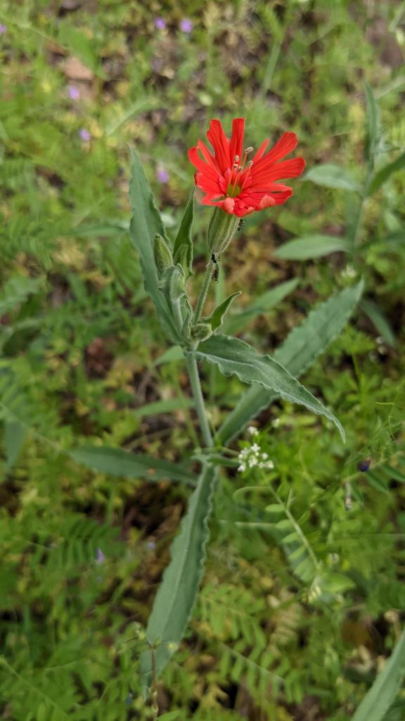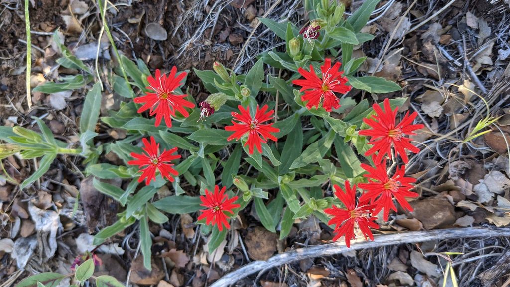 This year has so far been full of flowers we’ve never observed yet, aka “firsts.” Sometimes those flowers we only see one at one particular spot but other’s we see a couple times throughout our travels. This Cardinal Catchfly, Silene laciniata is in the second group which is fantastic because this plant produces such a stunning flower! The very first time we found them Trevor and I was on parallel trails in Upper Bidwell Park near Chico, CA. We each found our first Cardinal Catchflies at the same time! Bah! But those plants were in quite small bunches or just a singular stalk. A short trip to Stonyford Off-Highway Vehicle Park on a different weekend gave us another chance to swoon over these babies which were in a huge patch near a small stream.