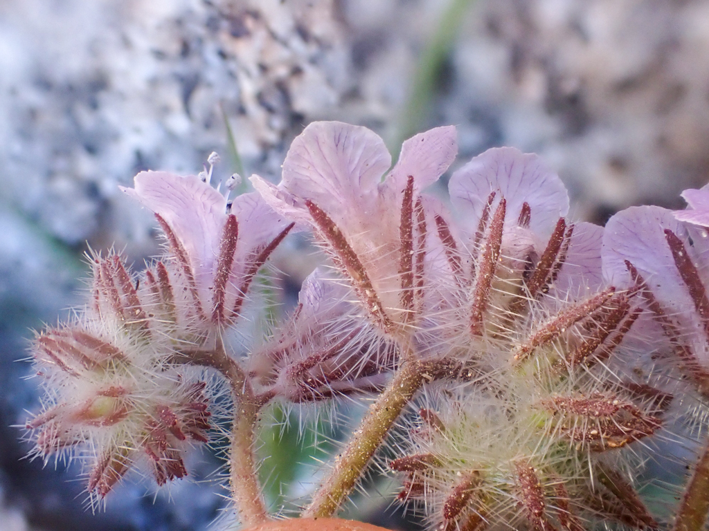 I love when the common name reflects a physical attribute, and as you can see from the photos this bebe is a furry fuzzy little dude! When you look underneath the flower, as one should always do, you can see the curly clustered flower beds that along with the hairs totally resemble a caterpillar. Our purple buddy here has four subspecies. While most people have seen Phacelia cicutaria var hispida on iNat there are three other variations (cicutaria, heliophila, hubbyi)