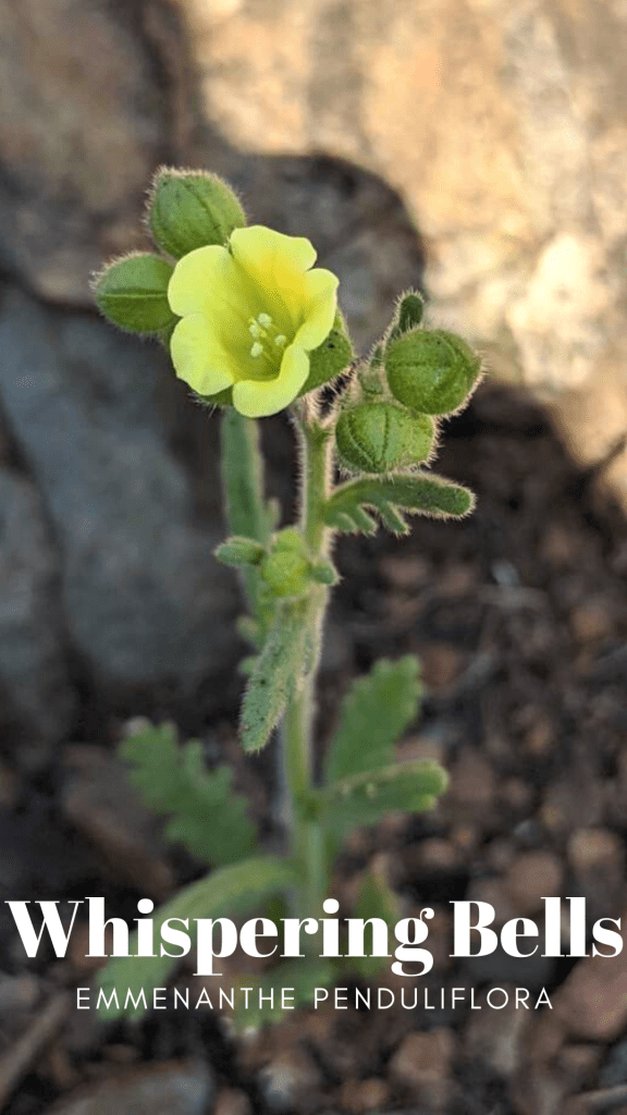 As a small note, I’m combining Emmenanthe penduliflora and a variation: penduliflora in this post. But the genus Emenanthe is monotypic, meaning penduliflora is the only species within this genera. Variation in botany, in wild plants basically means a naturally occurring variation, but two variations can usually still interbreed.