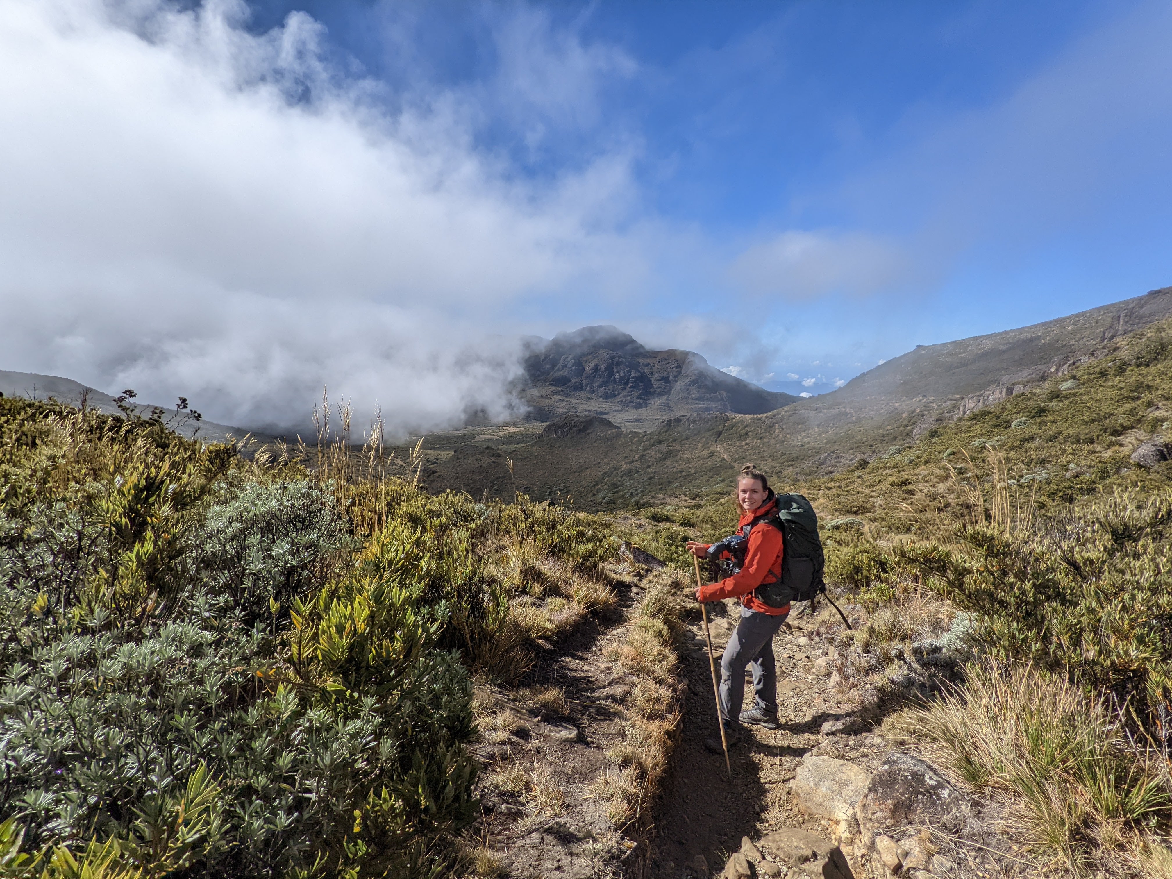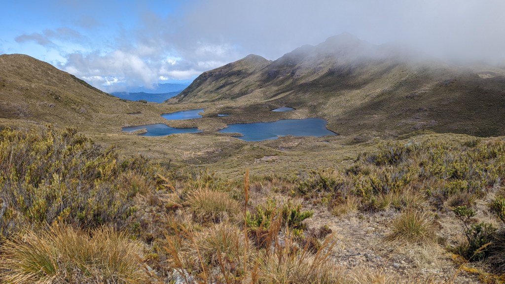 We totally lucked out with the weather for our ascent, which we did first thing in the morning on day two. Since we were looking for at plants along the way it took longer than a normal group, but quicker than I expected. While we didn’t see both oceans, we could see many surrounding peaks, and the lakes below. After departing from our travel companions, Trevor and I explored the lake below, Lagos Las Morenas, which had tons of mountain lion scat, just OoOodles of it, much to my happiness. The ascent back up to the saddle before reaching the main trail to the refugio was BRUTAL. We both felt totally exhausted on the incline, which may have been the very beginning stages of meeting Ms Corona.