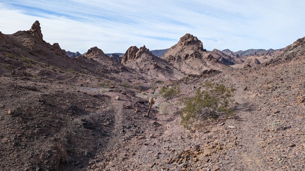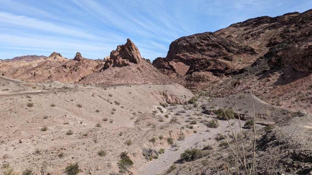 While it would have been lovely to observe a living tortoise, we weren’t really focused on them. The shell was in the middle of the wash we walked near our turn-around spot. It still had, what I believe to be pelvis bones inside, there wasn’t much else besides sand. I did not know that “the Mojave population of the desert tortoise (Gopherus agassizii) includes all tortoises north and west of the Colorado River in Arizona, Utah, Nevada, and California (USFW).” Although their range may extend over many state borders “these tortoises are impacted by ongoing threats, including loss, degradation, and fragmentation of habitat due to development. They are also impacted by increased wildfire due to non-native invasive vegetation, disease, road mortality, and predation of their eggs and hatchlings (USFW).”