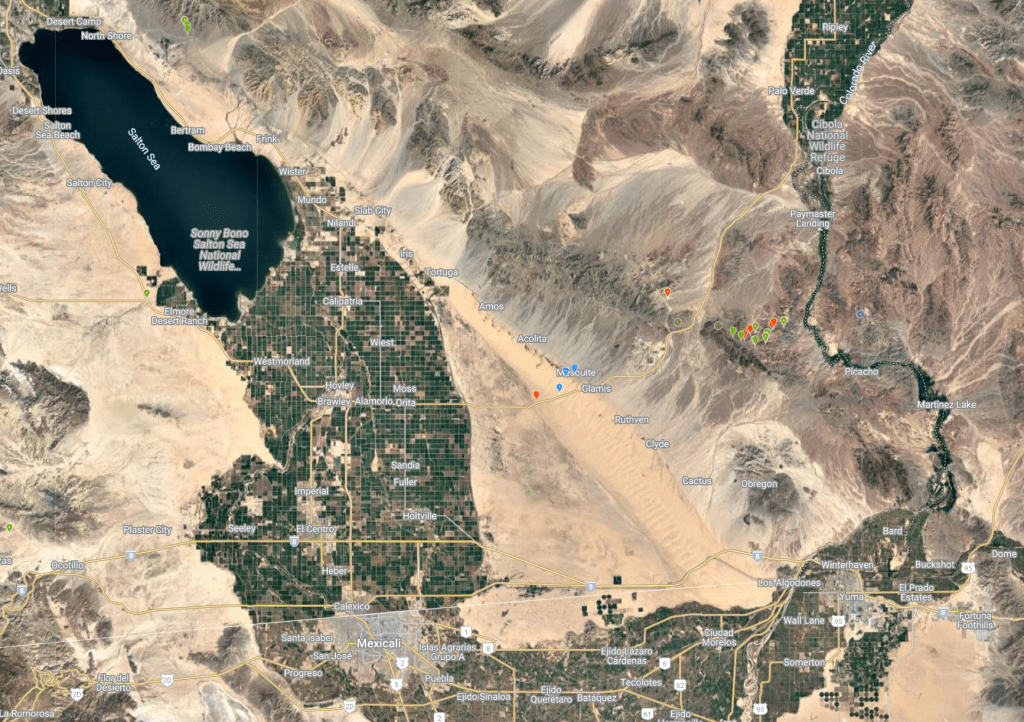 In this blog post, I’m going to focus on where we went on Monday and Sunday, Indian Pass Wilderness, and North Algodones Dunes Wilderness Area, some of California’s most southeast portions. The Borrego Springs area and Shelter Valley are much more “popular” and better explored, and written about, from my and others’ perspectives. For the last two years, we’ve spent many weekends in that area but never gone southeast of the Salton Sea area, until now. If interested, check out these blog posts: cacti, desert flowers, living in Fernbrook, and spurge plants.