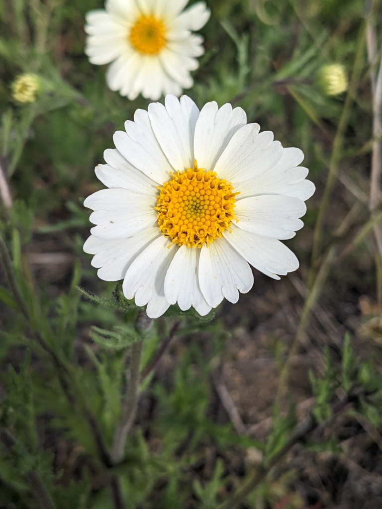 This Layia is endangered, it has a rare plant rank of 1B.1, the rarest of the rare in California botanical speak. So like any other endangered plant or animal, this species used to be much more abundant, which is also apparent in herbarium collections. So what happened? Its significant decline has been due to agricultural conversion, grazing intensity, expansion of non-native annual grasses as well as road and wind energy development. More existing sites may go unnoticed as some populations “appear only in very wet years” (CNPS Rare Plant Inventory). This could be the case with the population we saw, and that population was very colonial, which has also been noted for this species (CNPS Rare Plant Inventory).