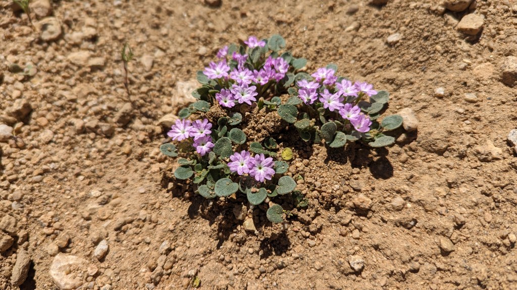 White, pink, and lavender clusters sparsely dotted the wide and hot landscape of the meadow’s edge, making for quite the scene. The flower heads are only about a centimeter in size, but their colorful blossoms all packed together in mat form really make it a spectacular specimen.