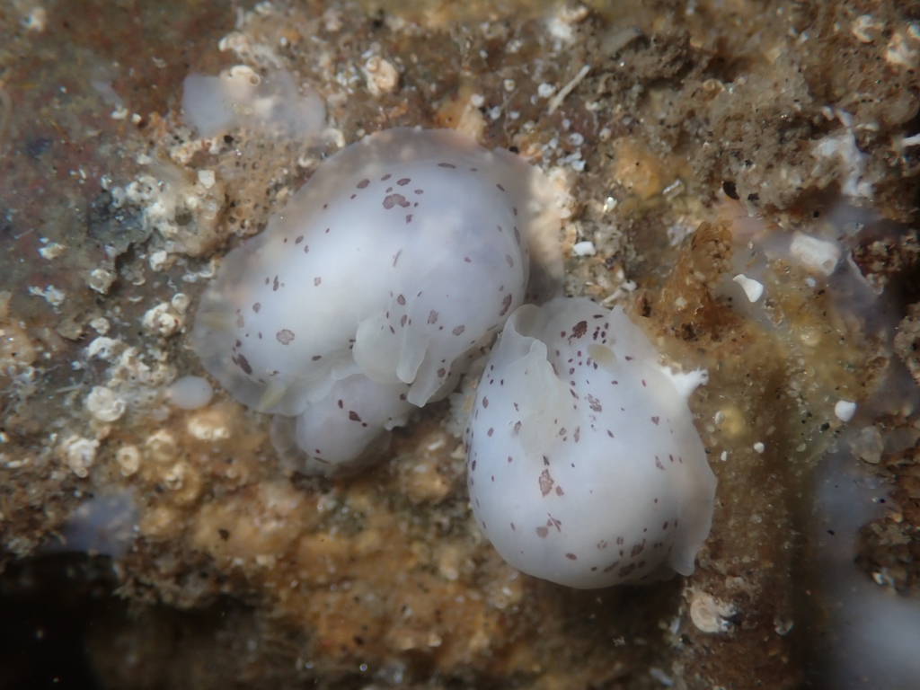 The last photo is of a Black-spotted Porostome/Dorid, and there are actually three in the photo! As you can see they are white to pale cream with “chocolate-brown to reddish-brown blotches of various sizes” (iNat Taxa Guide). Unlike most nudibranchs, this is one species, along with other spotted Nudis, like the San Diego Dorid, that if someone wanted to, you could match up individuals. I did this once, with my first Black-spotted, and with good photos, it’s definitely possible to compare multiple individuals.
