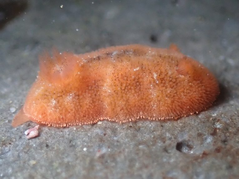 Of the few we’ve seen, they’ve been a variety of sizes, but they can grow up to roughly 2.7 cm in length. Black-spotted Porostomes have been recorded from Monterey County down to the Baja.
